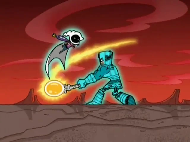 Unfortunately, after the world is returned back to normal, Timmy and Bippy both discovered that the muffin is at the hands of Crocker, who takes a bite and wishes he could catch a fairy. He obtains a butterfly net (one of the few items a fairy's magic has no effect on). As Bippy, Timmy and Cosmo fall off the steep hill, Wanda gets captured inside a butterfly net by Mr. Crocker before running off. Meanwhile, Jorgen Von Strangle scrambles the fairies and destroys the bridge to Fairy World after discovering a fairy has been captured. Back on Earth, a panicking Cosmo attempts to chase after Crocker but Timmy holds him back in fear that he would get captured as well. Cosmo proceeds to break down in tears and cowardly chickens out of the battle. Timmy and Bippy must fight Mr. Crocker themselves, but the Food Cart Guy passes by with more muffins and distracts Bippy, leaving Timmy on his own with a devastated Cosmo. Timmy realizes that the first thing Mr. Crocker will do with his newfound power is rub it in the face of his students, so he rushes back to his school. With his new-found power, Mr. Crocker appears in a power armor suit which has Wanda trapped in a scepter and the Fairy-versary muffin within the chest cavity. He terrorizes his students by turning them into ice statues (he wanted to turn them into ash), turning Sanjay and Chester's heads into toilets when they asked to go the bathroom, and then chases Timmy off as he transforms Dimmsdale and makes himself an all-powerful magical dictator, thus beginning his reign of tyranny.