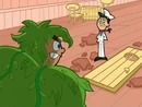 When Mr. Galaxy, a muscular man, cut the ribbon, for the opening ceremony, Timmy became much bigger and super strong, due to his wish to be the strongest guy on the beach. The moment that Mr. Galaxy set a foot on the Beach, Timmy became as big and strong as Mr. Galaxy, and this freed him from the glass prison in the story of episode Beach Bummed).
