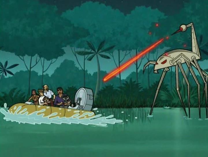 Back inside TV, Timmy is in another cartoon called "Jonny Hunt", (a parody of Jonny Quest). Timmy is happy that the adults in that program will allow a 10 year old boy like him to go on dangerous missions, but not without giving him a dangerous weapon first. Timmy takes the rocket launcher they gave him back with him to the real world so that he could show Cosmo and Wanda. Timmy returns to the real world and shows Cosmo and Wanda the rocket launcher he got from television. When Wanda sees that Timmy brought a dangerous weapon back to the real world, she reminds him that he could get hurt, but Timmy doesn't think so and says, "Not as long as you guys are around." But Cosmo remarks that they won't always be around and Wanda shushes him. Timmy asks Cosmo and Wanda what does "they won't always be around" mean, Cosmo becomes nervous and hides in the shower, but Timmy flushes the toilet to get Cosmo out of the shower and he lands in the toilet. Timmy is curious to what Cosmo meant though, so Cosmo tells Timmy about a story called "The Wands and the Wings" where he holds up a green sock puppet and a pink sock puppet, but Wanda tells Cosmo that it's the wrong kind of speech and explains to Timmy that Fairy Godparents are only assigned to kids who need them most to which Timmy agrees with such as his parents are always busy and Vicky is evil, but Wanda goes on to explain the real reason about what Cosmo has said.