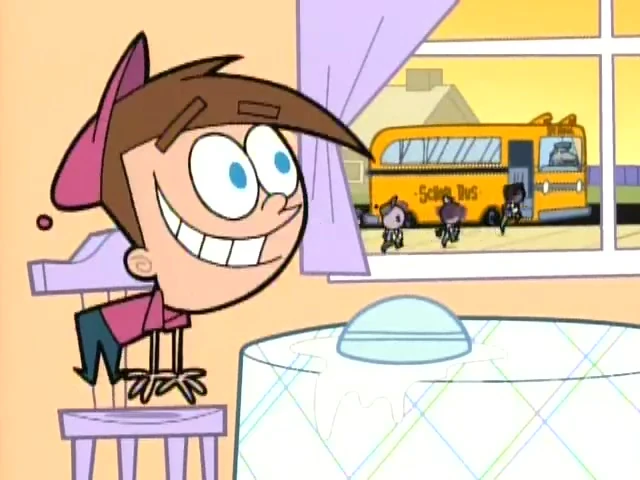Doidle, in Timmy's body, excitedly wants to chase the school bus.