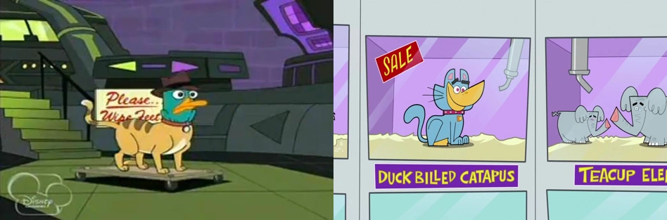 - Also, one animal name is "Duck Billed Catapus" which makes a reference to the episode, "Escape from Phineas Tower" because Perry was being trapped in a cat's body.