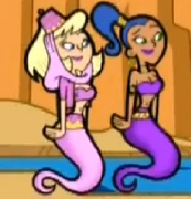Genies possess human-like bodies and have ghostly tail for legs. Genies seem to customarily wear Arabian-themed attire.
