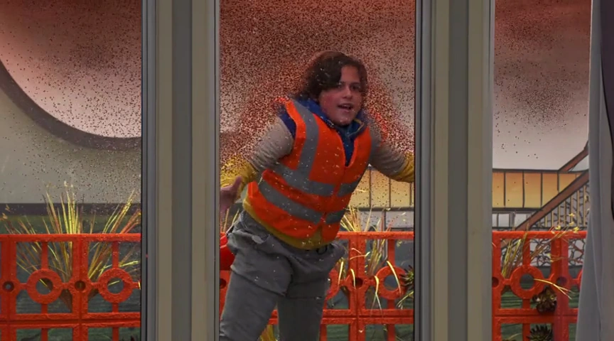 Gus and Viv were going to go do community clean up before Gus was taken by the hornets. He gets a traffic cone stuck to his butt and becomes their queen. He later uses the hornets to help save Viv and Roy from the zombies, luring them away to "the nearest indoor mall".