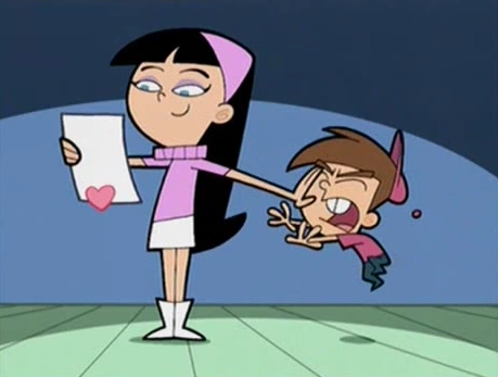 Timmy stumbles onto a chat room Trixie and Veronica are using. He makes a message reading "Do you think Timmy Turner is neat?" and uses it to send himself from Veronica's computer to Trixie's, where he makes off with his e-mail. (To hide her feelings for Timmy from Trixie, Veronica answers that Timmy is "gross".)