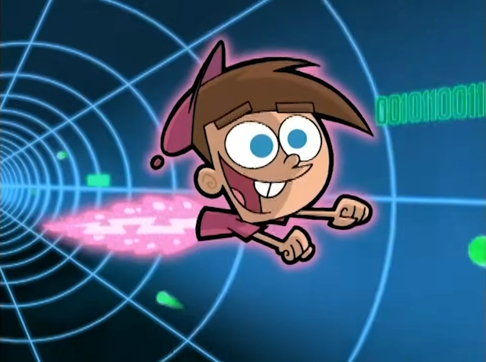On Timmy's computer, a video appears of Crocker saying he will send the recording of Cosmo and Wanda to every computer in the world. Timmy shows up and tells the fairies to turn the computer off before Crocker figures out who their godchild is, and so Cosmo blows up the computer. Timmy flies to Crocker's hard drive in an attempt to stop the video upload, but is stopped by a firewall. Crocker sees him again and sends several viruses to kill this "pink-hatted computer virus". The viruses chase Timmy through the Internet, and Timmy manages to evade all but one of them by getting them stuck in a low-bandwidth zone. Timmy finds the fairy video about to be uploaded to the central hub of the Internet. While being chased around by the remaining virus, he discovers that they can destroy the video by flying over it, and he flies directly over the video so that the virus eats it all up and explodes.