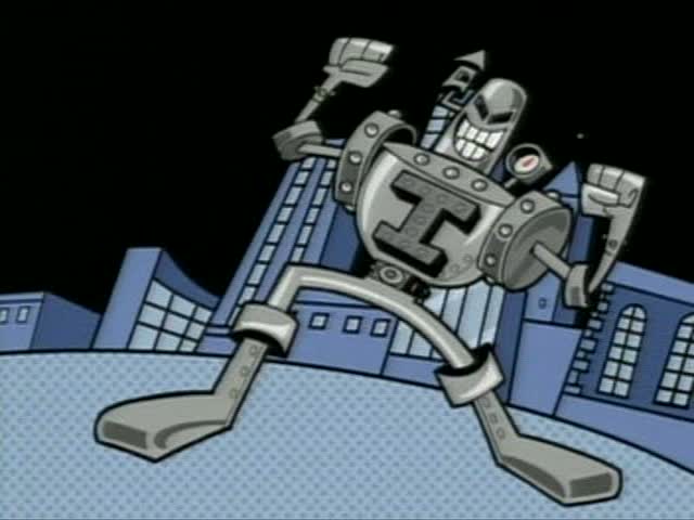 He seems to be an entirely metal creature, with a silver metal body, presumably made of iron. He has a large "I" on his chest, and a whistle on his shoulder. He also as large metal shoulder pads and metal bands on his elbows and knees.