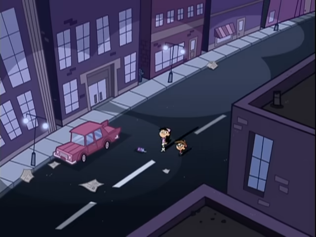 A harmless flag pops out of the missile pod, saying that the missiles were sold separately. Wanda finally manages to convince Cosmo to stop poofing them away from Timmy by hugging him and smothering him with love, causing Cosmo to realize what trouble Timmy is in, and they poof to his rescue.
