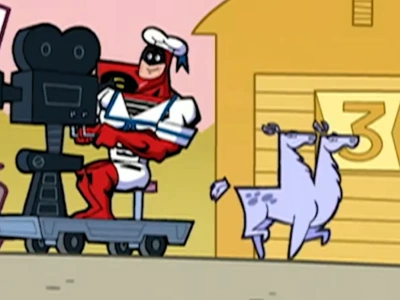 - During the close-up of the Bronze Kneecap's hand coming out from the Crimson Chin comic book, the background of the audition set appears before the scene actually fades there.
