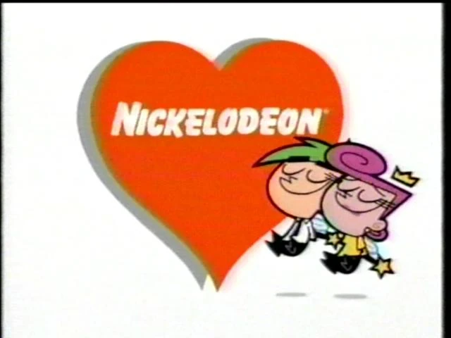 Cosmo and Wanda with a heart-shaped Nickelodeon logo, displaying the 1984-2009 logo.